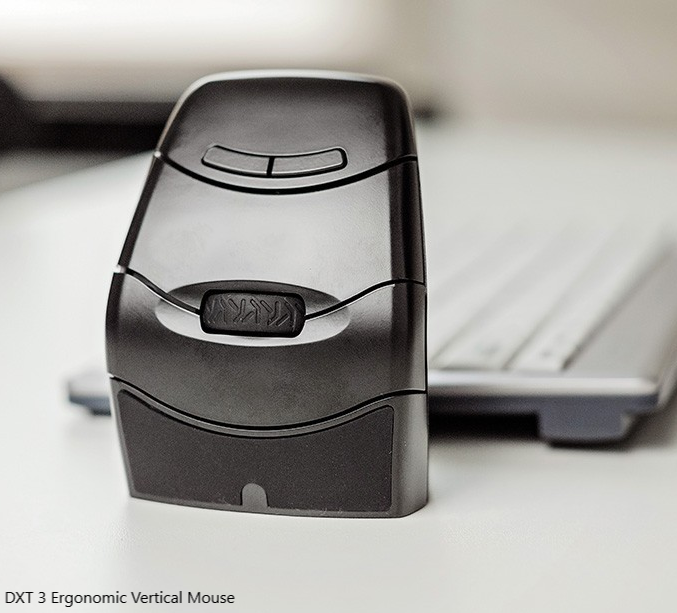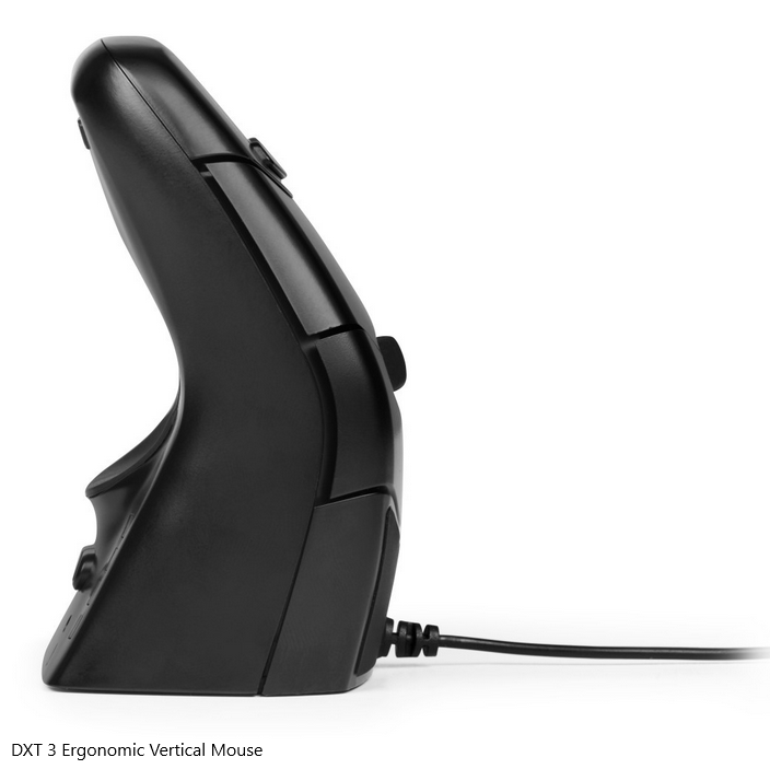 Met de DXT 3 Ergonomic Vertical Mouse (bedraad of draadloos) kan je met de grootste nauwkeurigheid computerwerk verrichten. De DXT 3 is zo ontworpen dat de hand een natuurlijke rustpositie aanneemt. Deze positie helpt bij het voorkomen of herstellen van ongemak/blessures, terwijl ook nauwkeurige cursorbewegingen mogelijk blijven.