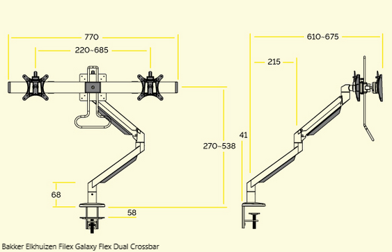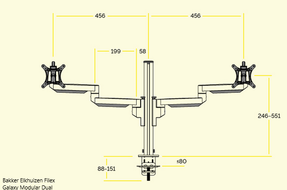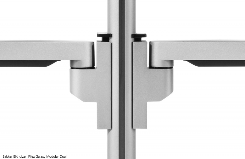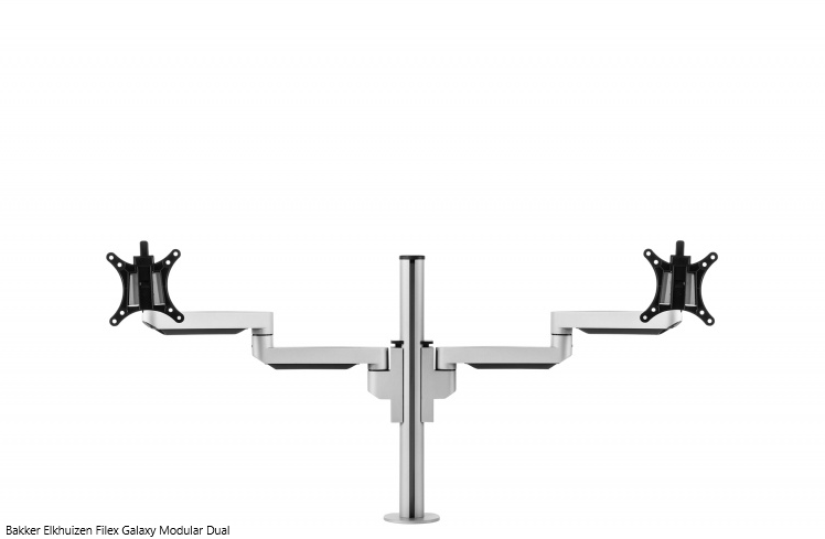De Filex Galaxy Flex Dual Crossbar is een ergonomische oplossing voor symmetrie met 2 beeldschermen.