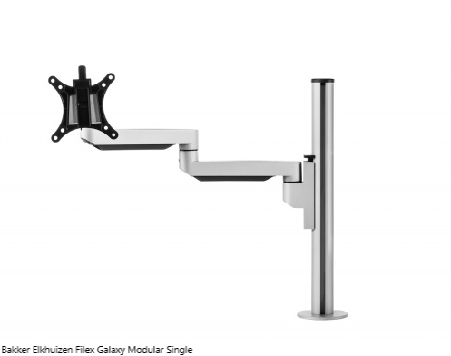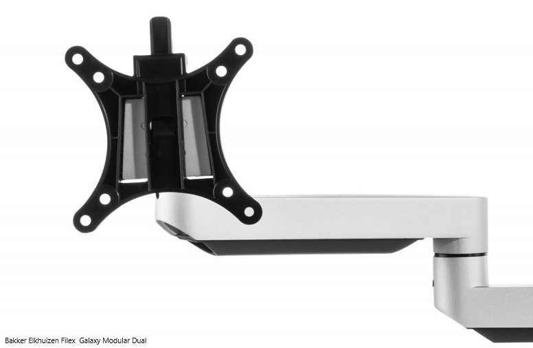 Het gebruik van een monitorarm zoals de Filex Galaxy Modular werkt stukken comfortabeler en verhoogt de productiviteit met 10% in vergelijking met een verkeerde positie.