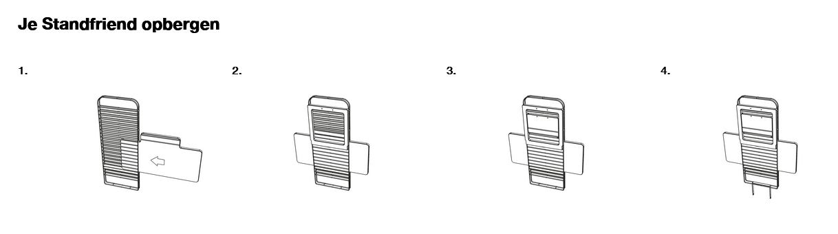 Eenvoudig op te bergen - Standfriend is eenvoudig op te bergen en het compacte, platte ontwerp neemt weinig ruimte in beslag. Hang hem aan de muur of berg hem op als je hem niet nodig hebt.
