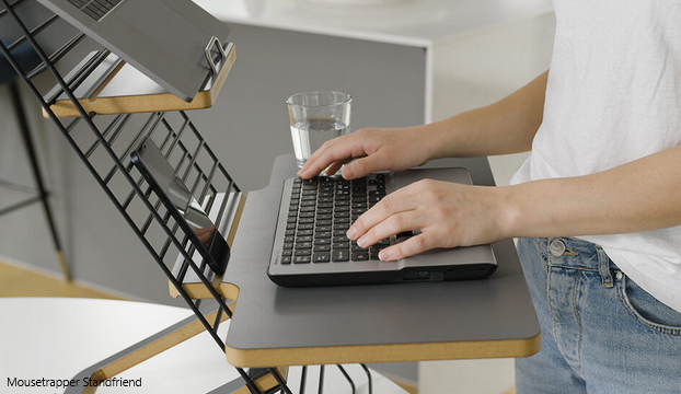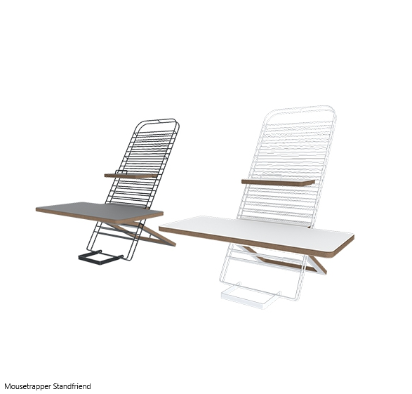 De Mousetrapper Standfriend is elegant en ergonomisch verantwoord. De Standfriend is de nieuwste toevoeging aan onze reeks oplossingen om u te helpen onnodige pijn te voorkomen tijdens het werken op de computer. Door te wisselen tussen staan en zitten voel je je beter en heb je meer uithoudingsvermogen. Compleet met een gecentreerd aanwijsapparaat voor een elegante, ergonomische oplossing – thuis of op kantoor.