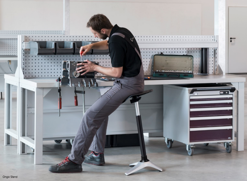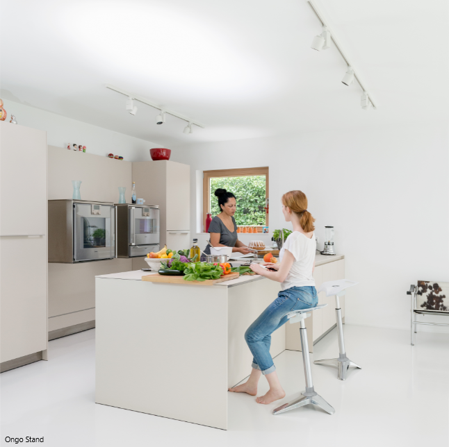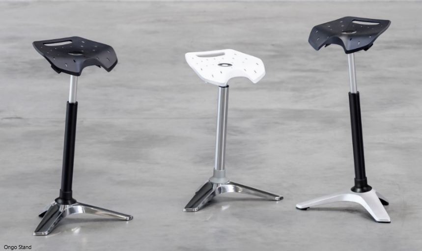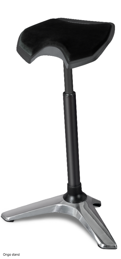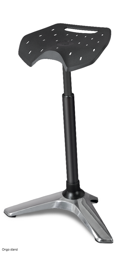 De ONGO®Stand ergonomische bureaukruk staat stevig op de grond met drie poten. De standpijp, verend in de voet gemonteerd, is zo flexibel dat evenwel de hoogte als de helling van de zitting zich perfect aanpassen aan elke werkomstandigheid. Ideaal voor mensen die staand moeten of willen werken. Omdat de combinatie van stabiliteit en mobiliteit de actieradius vergroot – voor ongehinderde concentratie en optimale resultaten