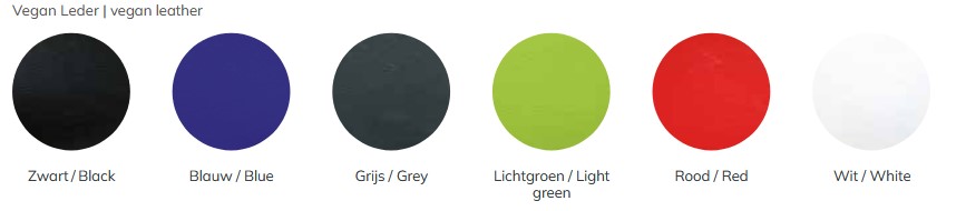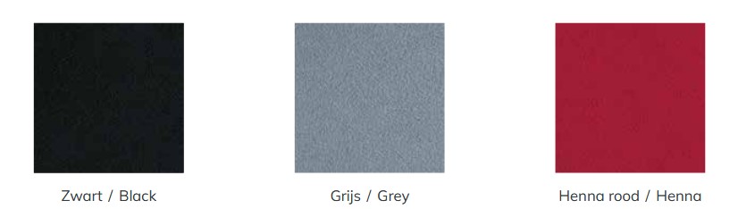De zitting is zowel verkrijgbaar in zwart en wit, als met een microfiber fleece vulling – in zwart, grijs en henna -, en skai natuurbasis