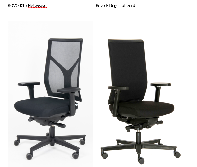Met de ROVO R16 hebben we een serie op de markt gebracht die volledig aansluit op de huidige vraag naar zit-oplossingen. De R16 serie is licht, slank en ergonomisch. Daarnaast is de stoel technisch vooruitstrevend dankzij ons gepatenteerd Ergo Balance mechaniek, maar de R16 is ook verkrijgbaar met een comfortabel synchroon mechanisme. Liever een andere kleur of wat meer luxe met een verstelbare hoofdsteun? Natuurlijk kan dat bij ROVO! We vertellen je graag meer over de vele mogelijkheden.