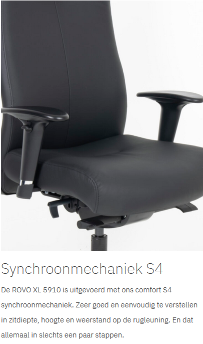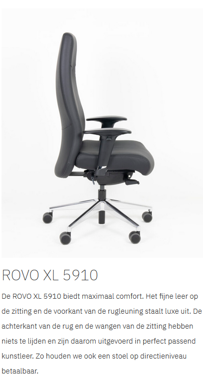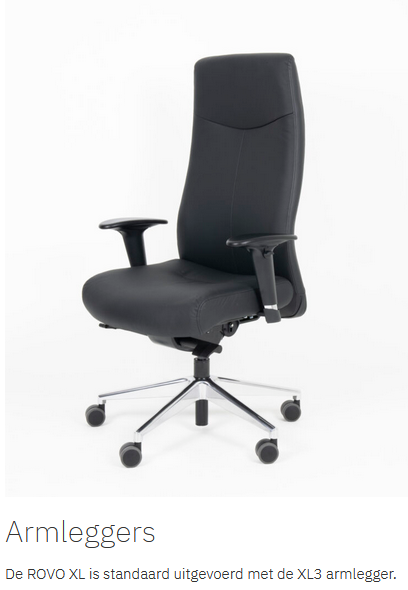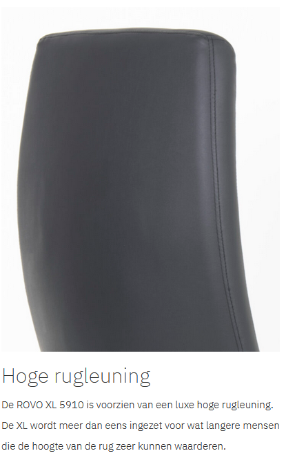Met de ROVO XL werk je op het hoogste niveau. Duurzaamheid, ergonomie, comfort; de XL serie heeft het allemaal. De ROVO XL is voorzien van een zuiver leren voorkant en een kunstleren achterkant. Hierdoor heeft de stoel een luxe uitstraling, maar tegelijkertijd blijft de prijs zeer aantrekkelijk.