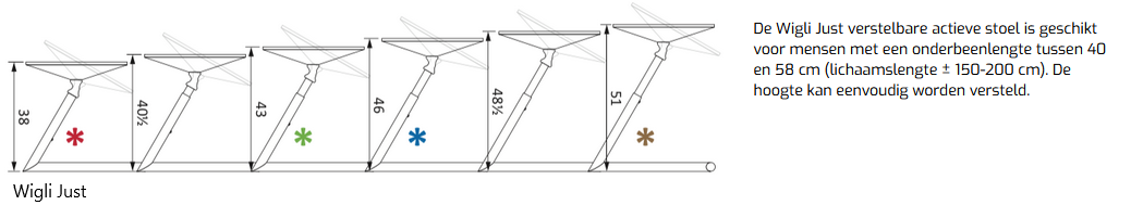 De Wigli Just is een in hoogte verstelbare ergonomische wiebelkruk. Hij is vervaardigd uit geëmailleerd staal en heeft een wiebelzitting van beukenhout met een rubberen kussen.