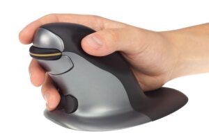 - Heeft een ergonomische verticale vorm (HE Mouse) waarmee de natuurlijk en ontspannen stand van arm en hand wordt gewaarborgd